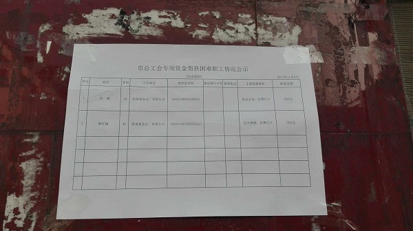 市總工會(huì)專項(xiàng)資金幫扶困難職工情況公示